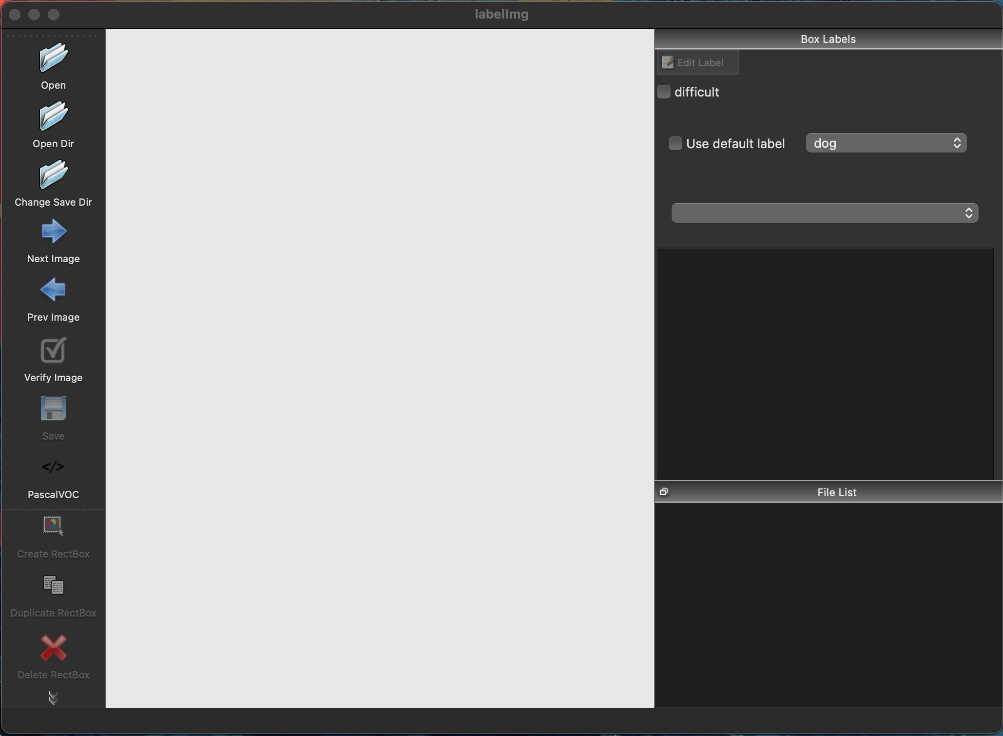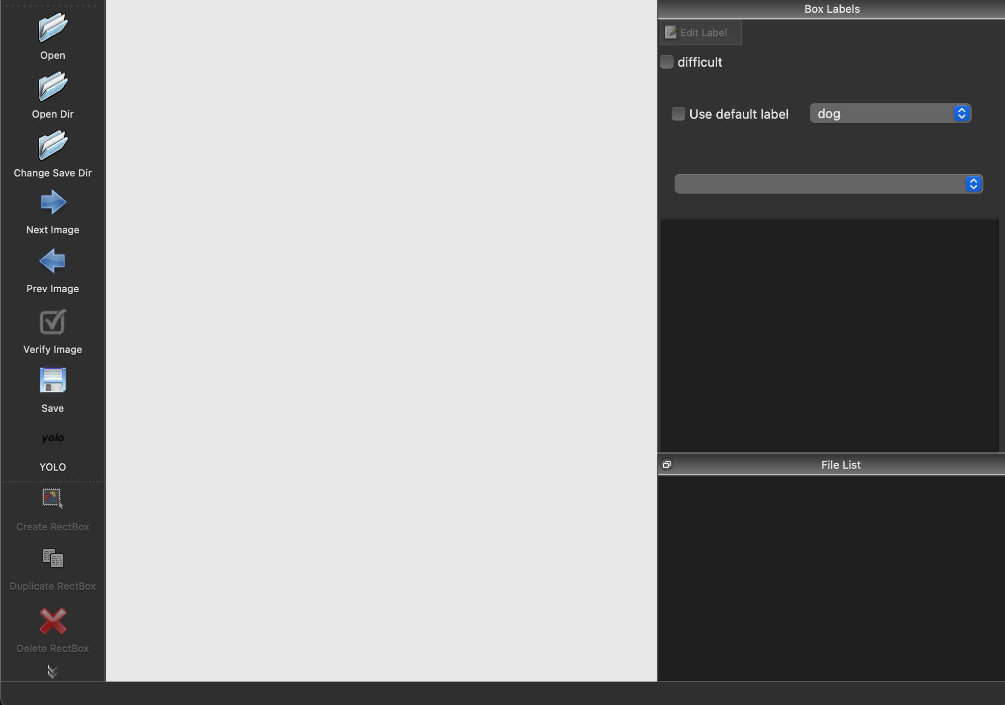 사용방법은 간단하다. open Dir을 통해 data가 있는 폴더를 열어주고 create RectBox 버튼을 눌러 labeling을 해주면 된다.