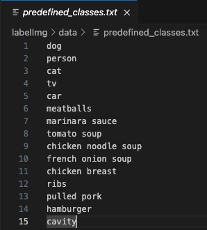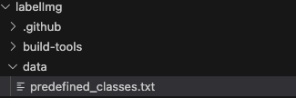 작업 전! 본인이 labeling할 데이터가 기본 label category에 있지 않고 수정을 하고 싶다면 git clone해서 labelImg폴더 밑에 data란 폴더가 있을 것이다 그 밑에 predefined_classes.txt란 파일이 있는데 이를 수정하면 된다.